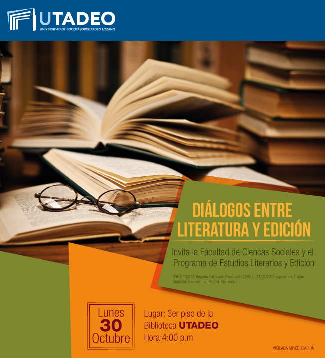 *Estudios Literarios y edición: SNIES 106133 Registro Calificado: Resolución 2398 de 21/02/2017 vigente por 7 años. Duración: 8 semestres- Bogotá. Presencial.