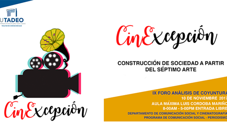 El programa de Comunicación Social-Periodismo de la Universidad Jorge Tadeo Lozano, realizará el próximo viernes 10 de noviembre el IX Foro de Análisis de Coyuntura “CINEXCEPCIÓN - Construcción de sociedad a partir del séptimo arte”; en el Aula Máxima desde las 8:00 a.m. en la universidad.