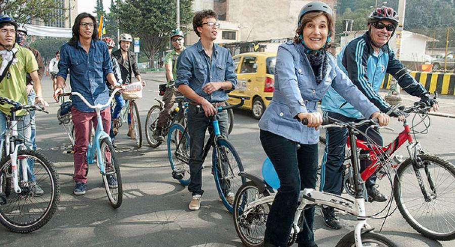 Cerca de trescientas personas llegaron en cicla a la Universidad en el día sin carro. La Rectora, Cecilia María Vélez lució muy activa en su bicicleta y no solo vino a la Universidad sino que pedaleó hasta la Plaza de Bolívar en companía de los demás participantes de la caravana.