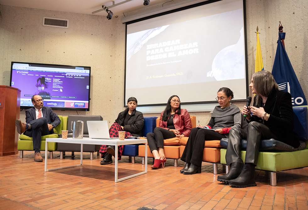 A su turno, resaltando que como mujer transgénero es la primera vez que está en un panel de mujeres, D.A. Restrepo, dio a conocer ‘Irradiar para cambiar desde el amor’. “Como en todas las dimensiones de la vida, el factor femenino asume condiciones propias del género como la ternura, compasión, interés, sensibilidad, amor…La investigación de origen femenino no solo busca un conocimiento, pretende cambiar la vida de alguien, eso diferencia el enfoque”.
