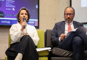 El primer panel del encuentro fue: Artes, ciencias, tecnología e innovación. Estuvo en cabeza de Bárbara Santos, artista visual bogotana. Adriana Gómez, Arq. PhD. en Sostenibilidad y Humanismo, además, profesora del Doctorado en Arte y Ciencia. Sabina Talero, Asesora de la Dirección de Ambiente y Desarrollo Sostenible del Departamento Nacional de Planeación. De forma virtual, también hicieron parte del panel: María Cristina Auscuntar, docente e investigadora; Carlos Córdoba, director de la Maestría de Diseño para la Innovación Social de la Universidad de Nariño y, desde México, la artista Tania Aedo.