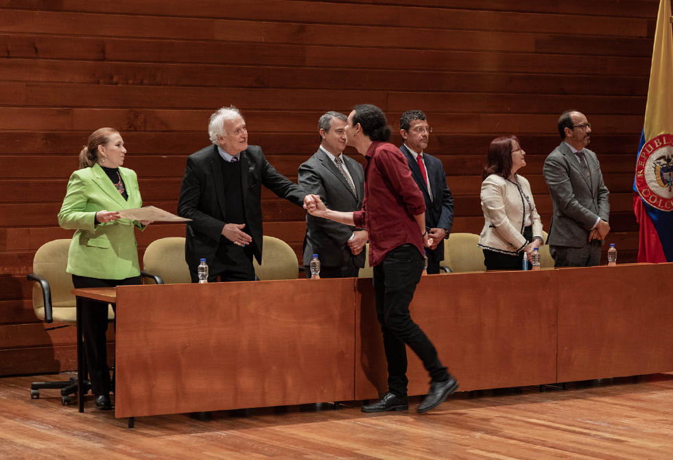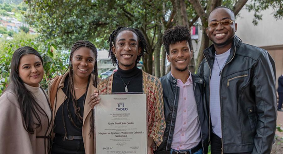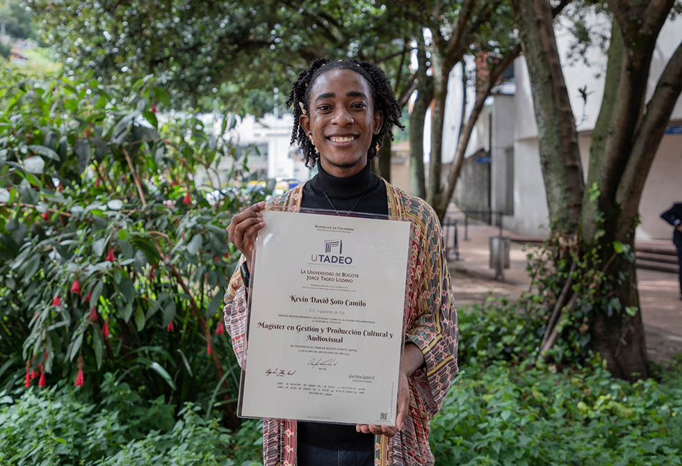 Al finalizar la ceremonia hablamos con Kevin Soto Camilo, graduando de la Maestría en Gestión y Producción Cultural y Audiovisual en convenio con la Corporación Manos Visibles, quien compartió su experiencia y felicidad por haber alcanzado un logro más en su vida personal y profesional.