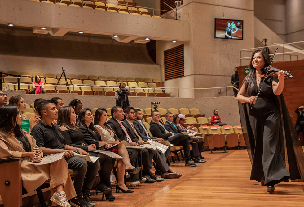 Por otra parte, Laura Acosta Jácome, graduanda de la Maestría en Gestión y Producción Cultural y Audiovisual, expresó, “esta ceremonia resume los logros y los triunfos alcanzados a lo largo de nuestra formación académica. Estudiar un posgrado y volver a la Universidad es una de las experiencias más enriquecedoras y valiosas que hemos podido tener”. Al final agradeció a directivos, padres de familia, administrativos y docentes por su arduo trabajo y apoyo en todo el proceso formativo.