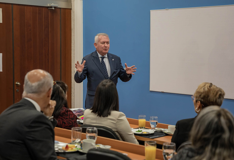 Nuestro líder académico hizo para los visitantes un resumen de la historia de la Universidad y explicó muchas de las potencialidades con las que cuenta la institución frente a otras de educación superior. De igual forma, habló con los rectores del proceso en el que está trabajando toda la comunidad tadeísta para renovar la Acreditación Institucional, exponiendo los beneficios con los que contarán sus egresados escogiendo nuestra institución como el lugar donde desean continuar con su proceso educativo.