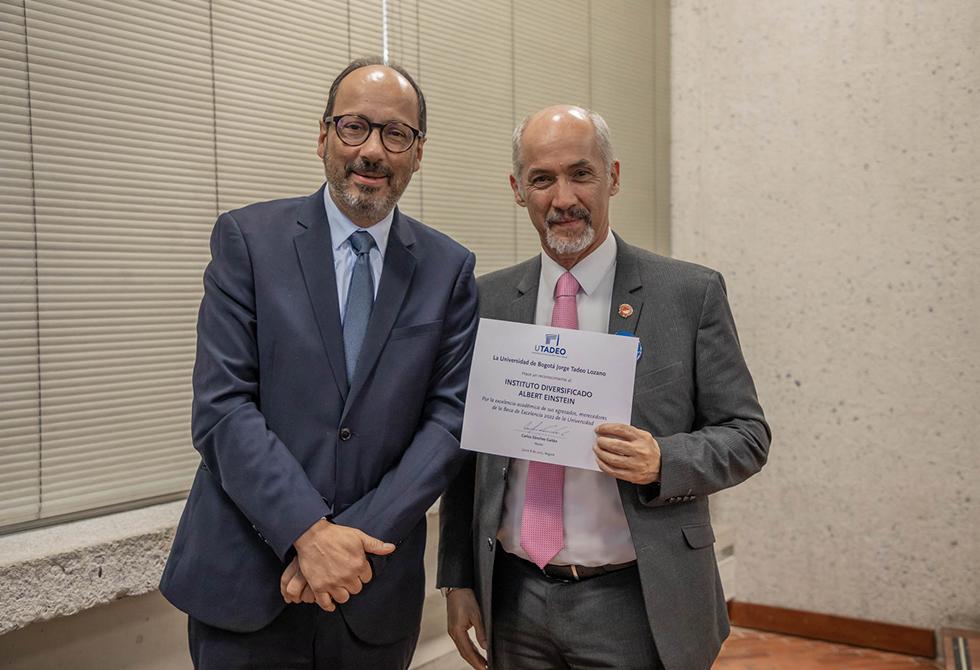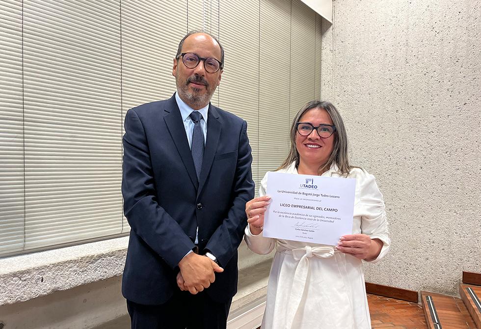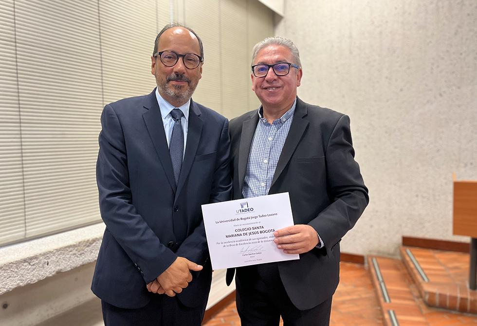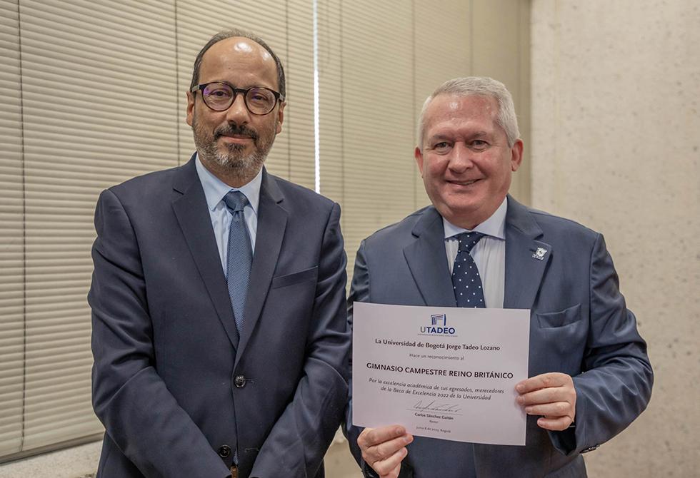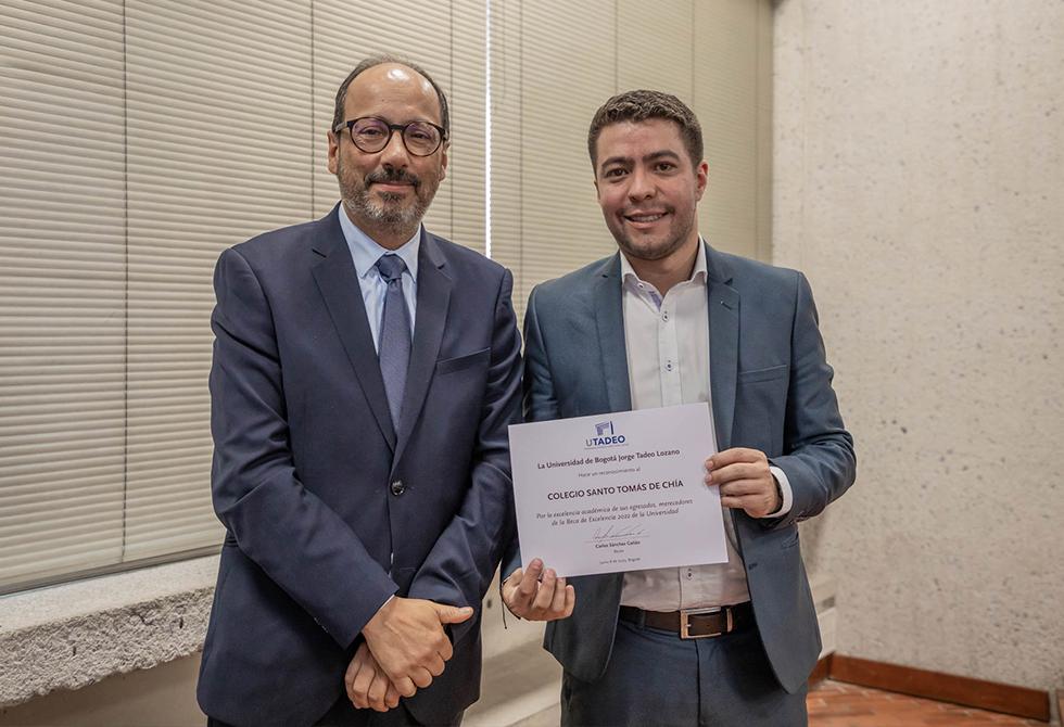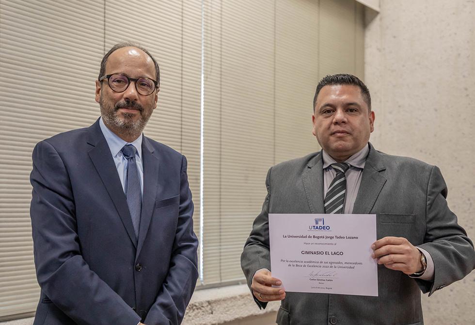 Los rectores recibieron, de manos del vicerrector, un diploma como Reconocimiento a la Excelencia, ya que varios graduados de estos colegios fueron merecedores una beca en nuestra Universidad. Se han destacado por su sobresaliente rendimiento académico y dejan en alto el nombre de sus instituciones educativas. A su vez, demuestran la calidad académica que se vive en sus comunidades de estudio y es gracias a sus logros y al desempeño excepcional de estos estudiantes, que Utadeo ha decidido reconocer anualmente a los colegios.