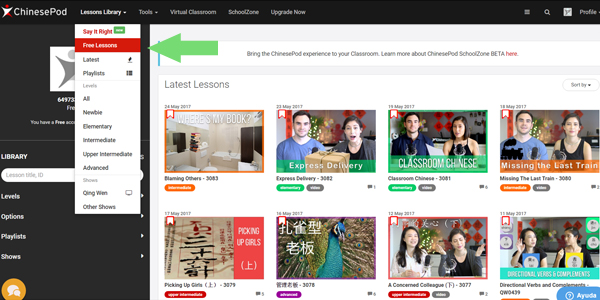 Entra a su página web. En el menú superior elige la opción “Lesson library”, luego “Free lessons”.