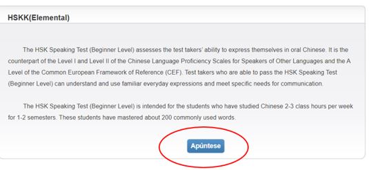 La imagen corresponde a la elección HSK - escoja HSK Nivel1/2/3/4Inscripción | ![]() |