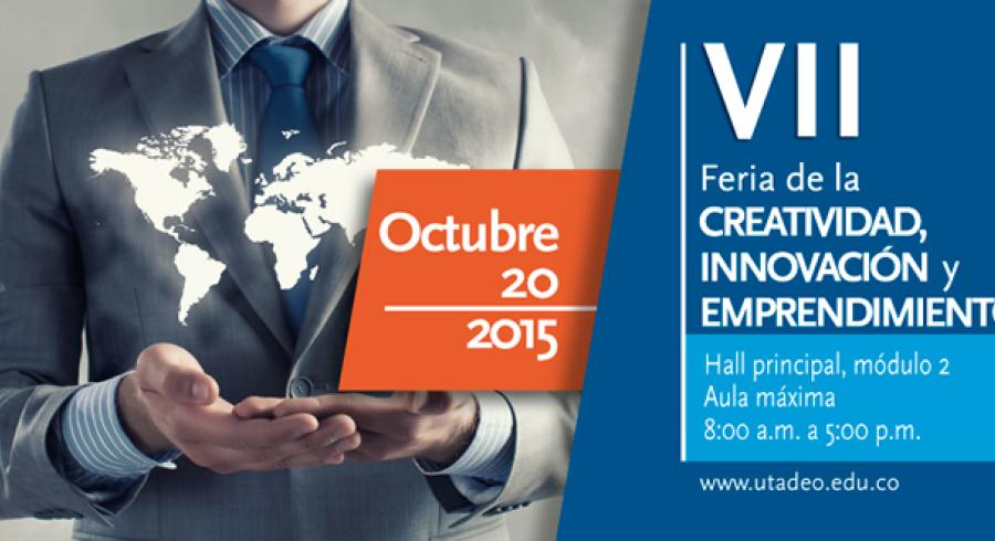 La Dirección de Investigación, Creación y Extensión a través del Área de Consultoría y Emprendimiento, invita a toda la comunidad tadeísta a participar en la VII Feria de la Creatividad, Innovación y Emprendimiento, que tiene como objetivo apoyar y guiar las actividades relacionadas con el emprendimiento, la innovación y la creatividad, por parte de la comunidad tadeísta, servir de centro de fomento cultural y apoyo de las empresas a través de procesos de consultoría y asesoría, participando en cualquiera de las 3 categorías: Empresa Baby, Idea de Negocio y Nuevo Empresario, la cual se llevará a cabo el día 20 de octubre de 2015 en el Hall principal de la Universidad Jorge Tadeo Lozano.