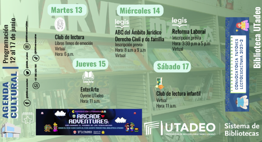 Prográmate con los eventos que trae el Sistema de Bibliotecas UTadeo del 12 al 17 de junio 2023
