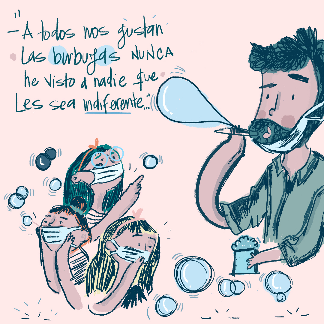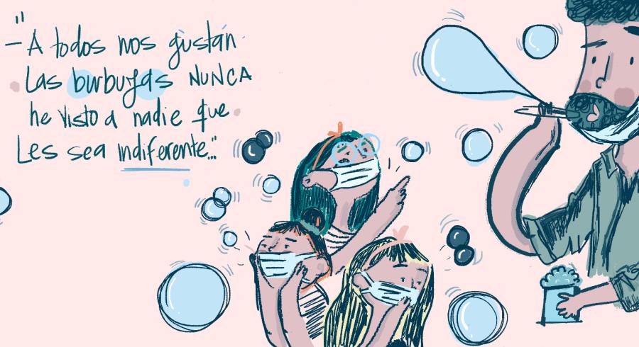 El que sopló burbujas volvió en sí y le contestó a la reportera con una inmensa desfachatez: “únicamente pedirles que no se les olvide que hubo vida antes de la pandemia”. Algún tiempo después, convertido en todo un ciudadano consciente, frente a la ventana de su sala (cerrada por supuesto), tomó su antiguo instrumento criminal, lo sumergió una vez sin ganas y sopló burbujas sin poner en riesgo a los demás, mirando al techo de su apartamento mientras estas se desplomaban en el suelo y se quedaban pegadas allí, reventando una tras otra y dejando una marca en su alfombra y seguramente en su alma.