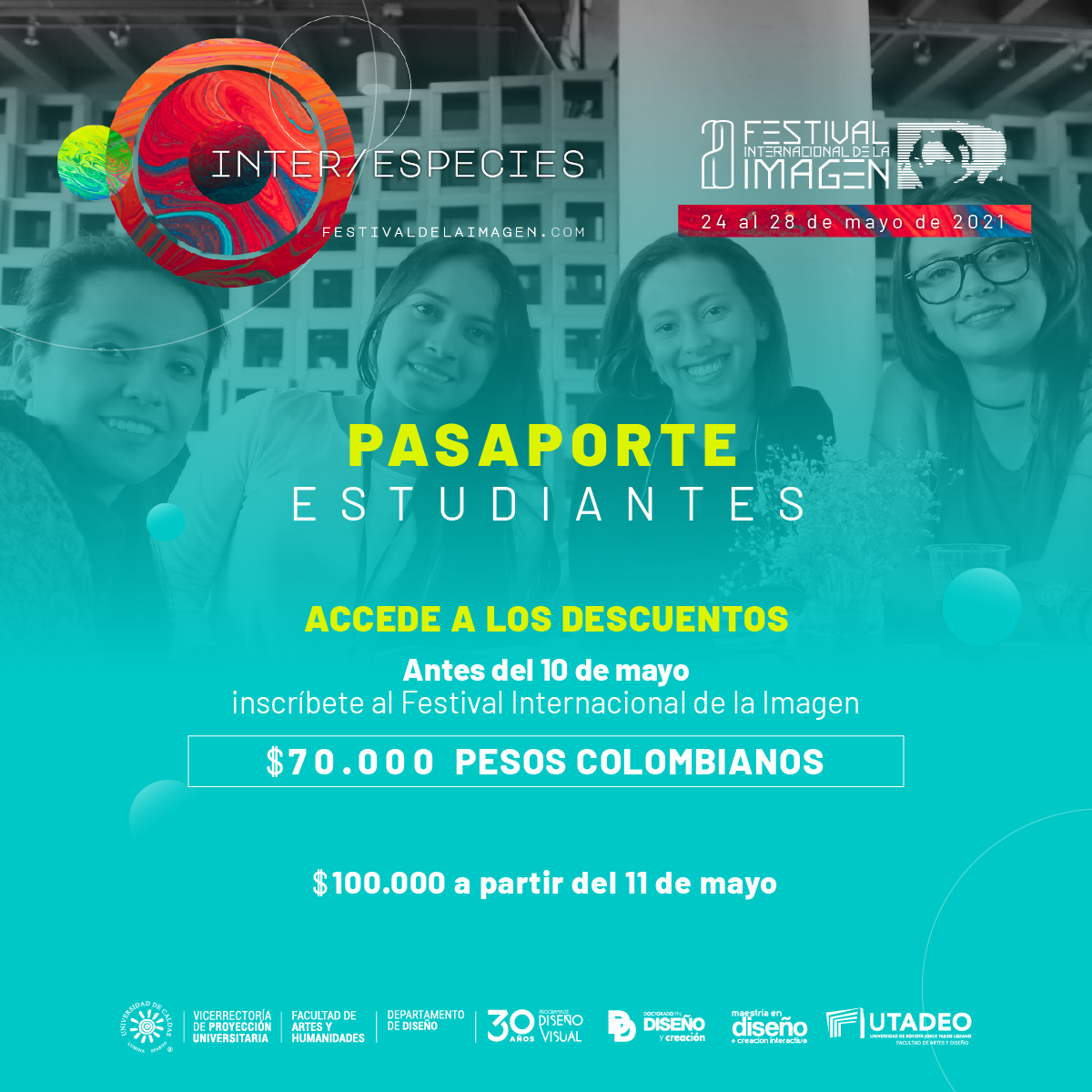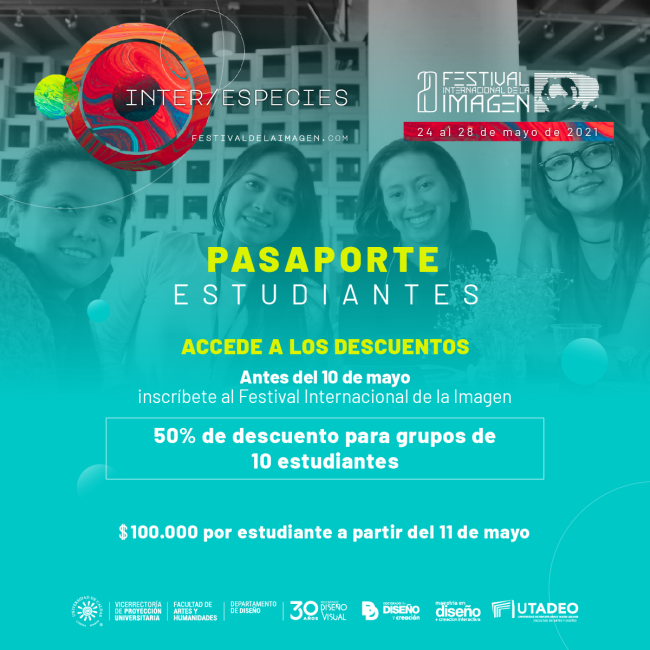 Hasta el próximo 10 de mayo, estudiantes y público en general podrán acceder a los descuentos en las entradas para la vigésima edición del Festival Internacional de la Imagen, según informa la organización del evento; todos los pasaportes dan acceso ilimitado a las actividades del Festival y la posibilidad de certificar 2 créditos académicos en cualquier Universidad del país.
