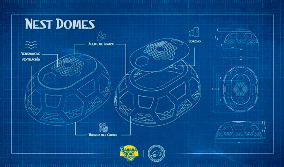 Inspirados en la forma orgánica de los caparazones de las tortugas y diseñados por biólogos marinos de Utadeo, artesanos locales, diseñadores e ingenieros, los Nest Domes se crearon con materiales naturales que forman parte del ecosistema de las tortugas marinas. Esta propuesta se trabajó con el apoyo de empresas privadas como Wunderman Thompson Colombia - agencia de marketing internacional- y Banana Boat quienes aportaron los recursos económicos para hacer de este proyecto una realidad.