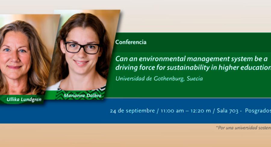 En la charla, que se realizará de 11 a.m. a 12:30 p.m. en el salón 703 del módulo 16, participarán Marianne Dalbro (Controladora ambiental y coordinadora de auditorías ambientales) y Ullika Lundgren (Controladora ambiental y coordinadora ambiental de la Facultad de Ciencias) de la Universidad de Gothemburg (Suecia).