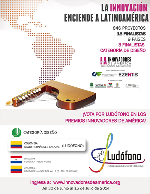 El Proyecto Ludófono, nació como una tesis de grado del estudiante David Hernández Salazar, del Programa de Diseño Industrial de la Tadeo en el año 2012; ha sido nominado a los Premios Innovadores de América en la categoría de Diseño.