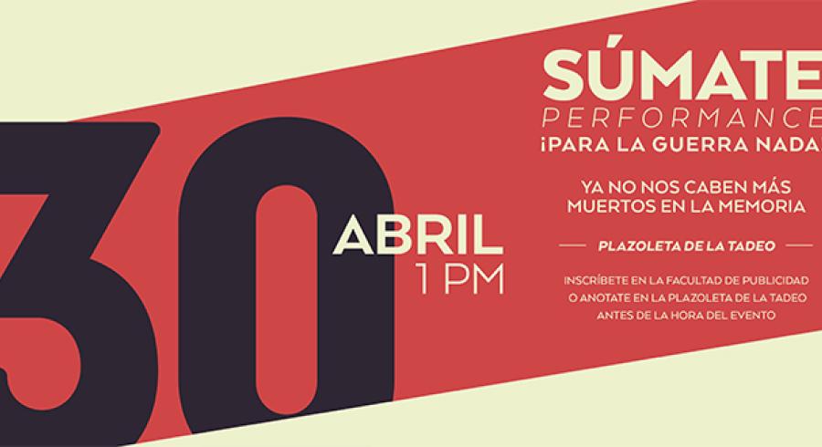 El programa de Publicidad de Utadeo realizará una actividad este 30 de abril a la 1 pm, en la Plazoleta de Utadeo, bajo la consigna "Para la guerra nada! Ya no nos caben más muertos en la memoria".