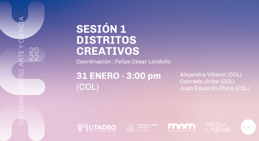 La primera sesión será el lunes 31 de enero y se dará inicio con la temática: Distritos Creativos, los cuales son entendidos como áreas geográficamente definidas de actividad económica de industrias creativas y culturales, donde la innovación y la creatividad agenciadas por y con la comunidad, posibilitan la generación de escenarios para para vivir, trabajar y visitar.