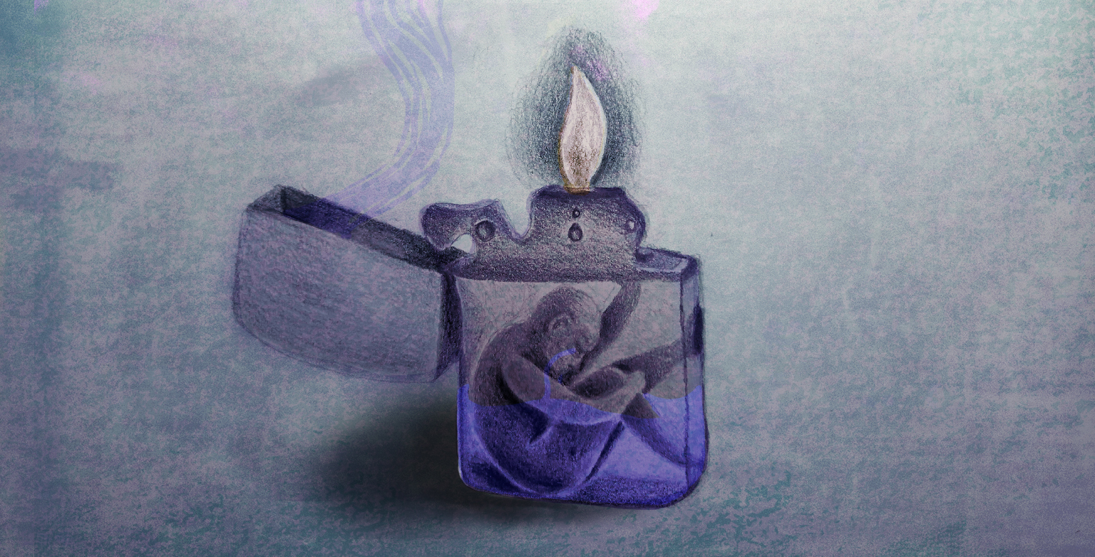 Ya sentado, con mi cara sumergida entre mis rodillas, siento en mi bolsillo de atrás ese pequeño tubito lleno de gas líquido que antes me era imposible de encontrar. Saco un cigarrillo dejando aún más solo el que queda en esa caja de color rojo con blanco, lo llevo hasta mi boca que ya está húmeda por culpa de mis lágrimas. Si encontrar el encendedor fue difícil, hacerlo funcionar fue una misión digna de una película. El temblor de mis manos, el sudor, la ganas de poder sentir la forma en que el humo pasa por mi garganta, todo se combina para que no pueda hacer crecer la llama que nace de la combinación de la chispa que da la piedra del encendedor y del gas que sale cuando se aprieta la válvula. Pienso en botar el cigarro y rendirme, pero de manera milagrosa, en un último intento la llama nace y logro encenderlo.