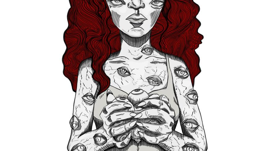 Utilizó elementos especiales para el procedimiento e incorporó el par de esferas en su rostro. Posgre, después de 21 años, logró ver. “Así que esta es la inmunda realidad”- dijo hastiada. Tomó el cuerpo de su padre y lo llevó a su cuarto, donde infortunadamente encontraría a su madre igualmente muerta. Santra no podía creer la maldad que sucumbía en la cabeza de los humanos, no entendía por qué querrían matar a una sencilla costurera que no le hacía mal a nadie. Con inmensa tristeza, acomodó a sus padres en la cama, los arropó y les dio un beso en la mejilla. Se dirigió a su madre y dijo: “No me imaginé que fueras tan bella, madre. Lo siento, pero requiero de tus ojos también, debo estar más pendiente de todo y encontrar con facilidad al desgraciado que ocasionó la muerte de lo más preciado que poseía”. Arrancó los ojos de su madre y también los incorporó en su cara. Fue a buscar algo en qué verse y encontró un espejo de plata. Vio cómo su ropa rasgada, su cuerpo lastimado y sus cuatro ojos la hacían ver horrible. Aunque reconocía que se veía fea, empezó a reírse maniáticamente, sentía que con ese aspecto podría atormentar (esta vez, en serio) al que sea y buscar respuestas del asesinato de sus padres. “Ahora seré la peor pesadilla monstruosa que tanto deseaban que fuera”-exclamó riéndose mientras miraba la sangre de sus manos.
