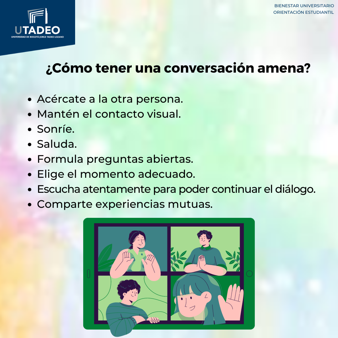 Recomendados¿Cómo iniciar y mantener una conversación? Compartir en Martes, Mayo 10, 2022“Lo más importante de la comunicación es escuchar lo que no se dice.” PETER FERDINAND DRUCKER.“Lo más importante de la comunicación es escuchar lo que no se dice”. PETER FERDINAND DRUCKER. conversaciones_1.png conversaciones_2.png conversaciones_3.png conversaciones_4.png conversaciones_5.png conversaciones_6.png