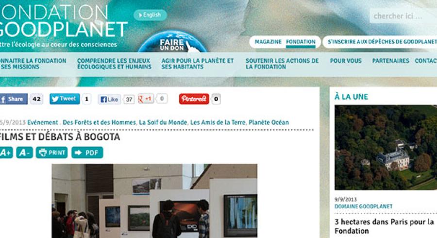 La Fundación Goodplanet, fundada en 2005 por el fotógrafo francés Yann Arthus-Bertrand, publicó en su sitio oficial http://www.goodplanet.org/ la noticia del evento Alma de la Tierra 3, llevado acabo en el pasado mes de septiembre en las instalaciones de la Universidad Jorge Tadeo Lozano. La participación de esta fundación estuvo a cargo de Jacqueline Goffart con la conferencia "Acciones para un buen planeta" y además se contó con la muestra de fotografías de la fundación.