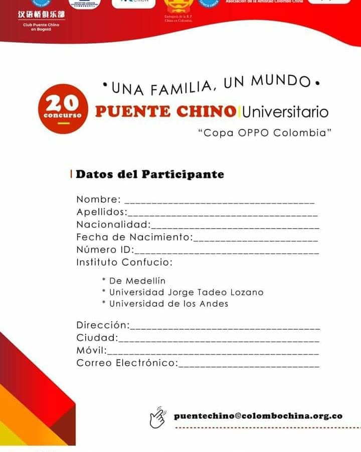 El concurso del Puente Chino ya esta aquí. Para este año tiene como tema Una Familia Un mundo y queremos presentar a las estudiantes del Instituto Confucio de la Universidad Jorge Tadeo Lozano que se postularon para participar en el concurso nacional que tendrá como fecha de premiación el 15 de julio