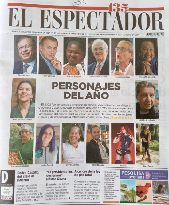 Su sorpresa fue aún mayor cuando repasó la publicación y vio el ‘equipo’ que destacaba el medio: “Yo veía los personajes que estaban al lado, como el presidente de la República, una persona de izquierda que llega por primera vez al poder; y la vicepresidente, la representación de las negritudes y me dio orgullo que me reconocieran por las labores que hago con arrecifes”.
