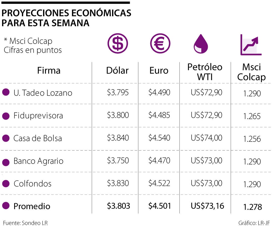 Por el lado de petróleo, los tadeístas aseguran que el barril WTI se ofertaría en $72,90 dólares, hidrocarburo que se ha visto afectado debido al Covid-19; para finalizar, los expertos aseguran que el índice Colcap estaría en los 1.278 puntos, a la espera de un impulso en la economía nacional.