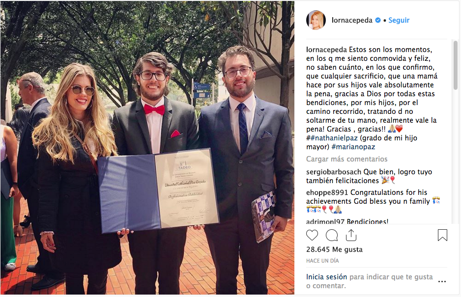 La actriz Lorna Cepeda celebró por todo lo alto el grado de su hijo Nathaniel Paz en Utadeo