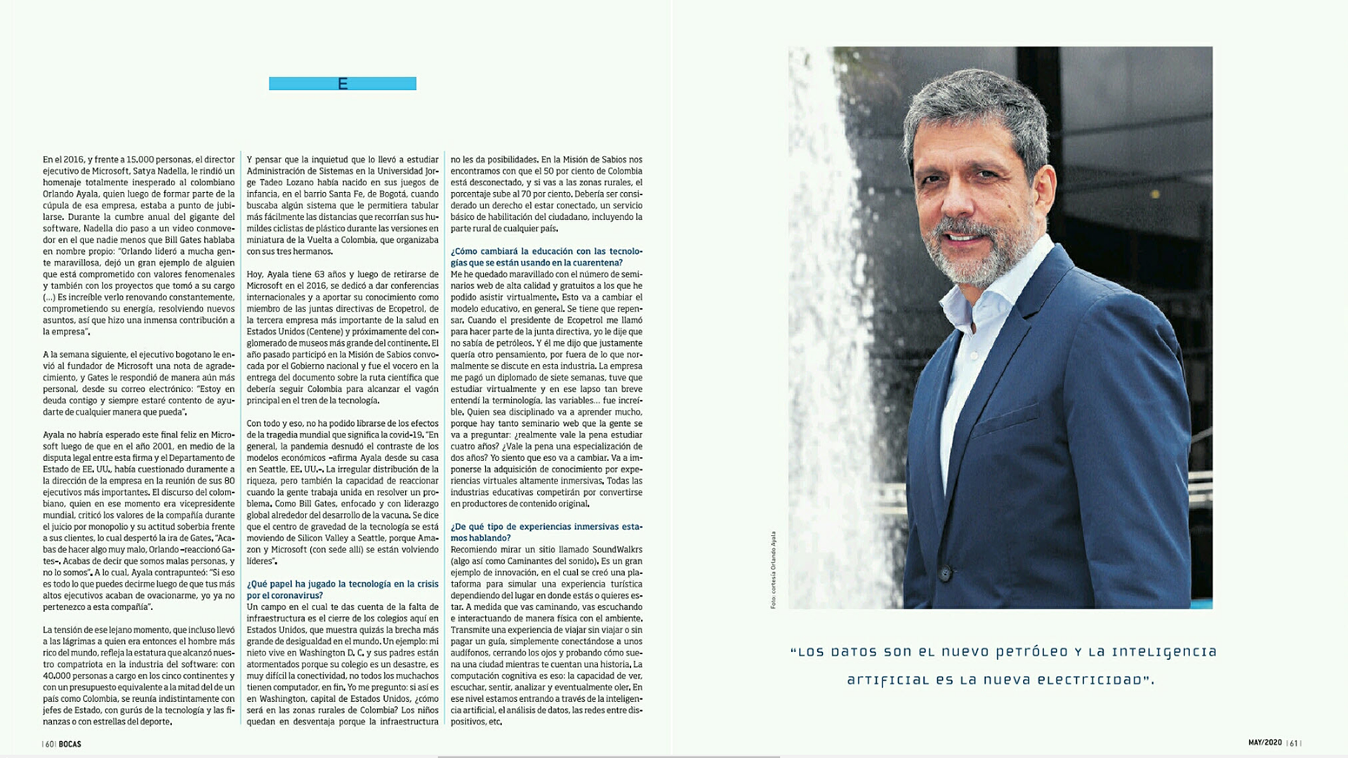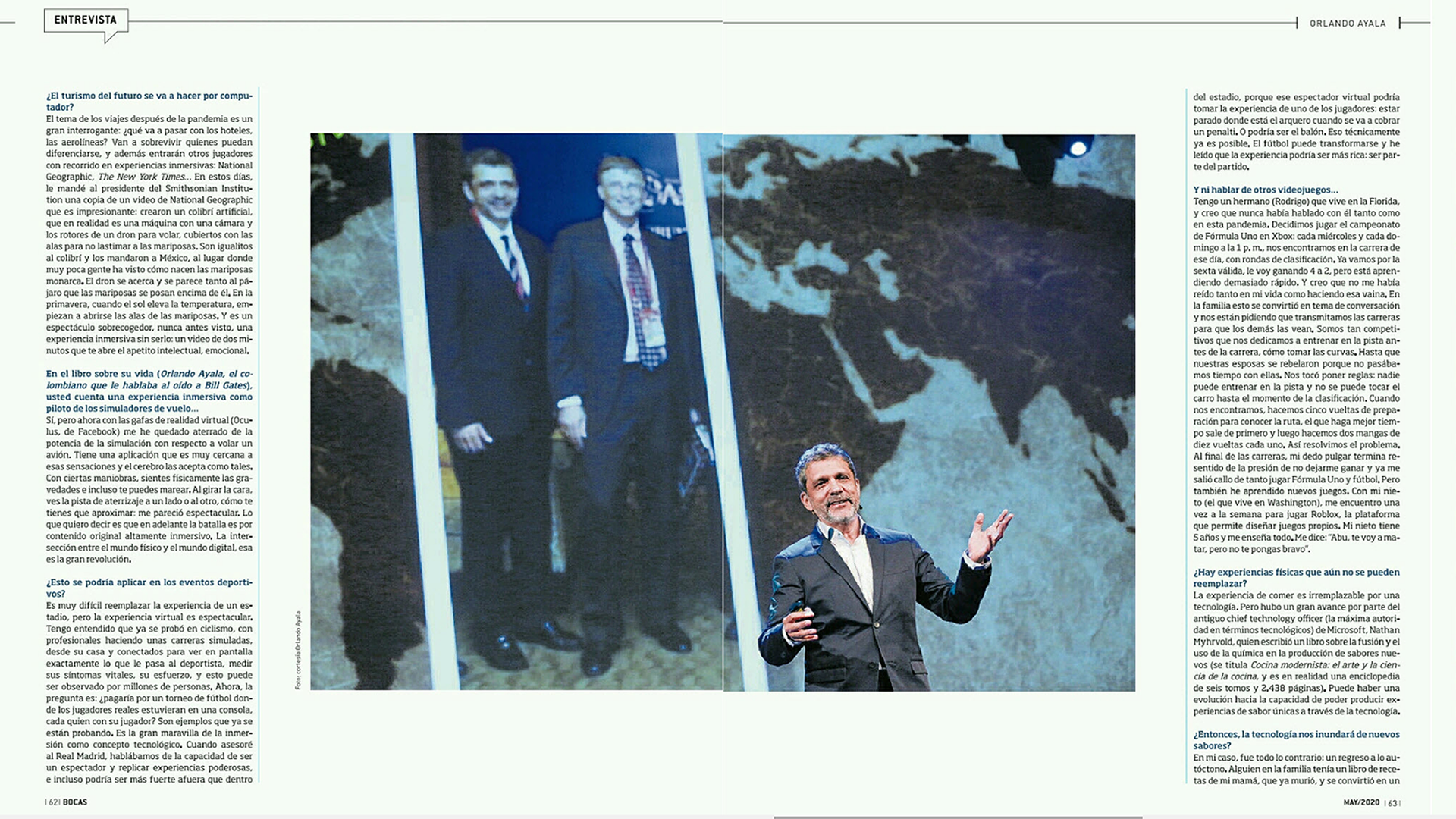 “Orlando lideró a mucha gente maravillosa, dejó un gran ejemplo de alguien que está comprometido con valores fenomenales y también con los proyectos que tomó a su cargo (…) Es increíble verlo renovando constantemente, comprometiendo su energía, resolviendo nuevos asuntos, así que hizo una inmensa contribución a la empresa”. Este fue el mensaje que Bill Gates dio el día que el tadeísta Orlando Ayala terminó una etapa como director ejecutivo de Microsoft, y así lo rememora la revista BOCAS en su reciente edición, con una entrevista a este administrador de sistemas.