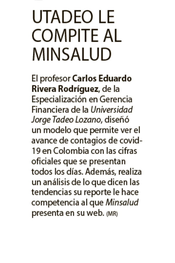 El diseño de un modelo matemático creado por el profesor Carlos Eduardo Rivera Rodríguez, de la Especialización en Gerencia Financiera de Utadeo, es destacado por el diario La República, en su versión impresa y digital.