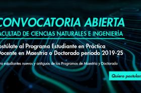 ConvocatoriasMayo 27 / 2019La convocatoria, que aplica para estudiantes nuevos y antiguos de estos programas de la Facultad de Ciencias Naturales e Ingeniería, estará abierta hasta el 10 de junio de 2019.