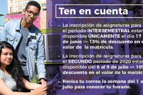 NovedadesJunio 04 / 2020Conoce aquí los tiempos que debes tener en cuenta para hacer tu inscripción. Revisa lo que debes inscribir y tenlo listo para cuando llegue tu momento.