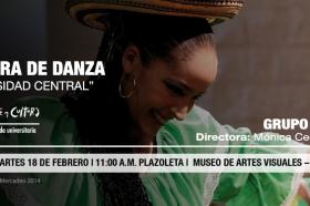 NovedadesFebrero 18 / 2014El Centro de Arte y Cultura presentará este martes 18 de febrero a las 11 de la mañana el grupo de danza de la Universidad Central, bajo la dirección de la coreógrafa y bailarina Mónica Cecilia Moncado. ¡Participa!