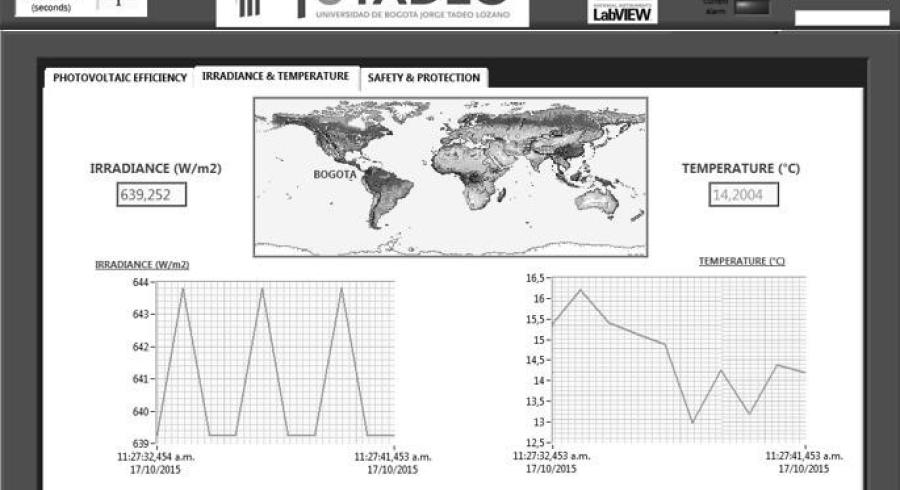This work describes a mathematical model developed to identify solar radiation and ambient temperature patterns in Bogota, Colombia, using autoregressive modeling with exogenous inputs (ARX). The solar radiation data and temperature used in the model were taken from the meteorological stations of Universidad de Bogotá Jorge Tadeo Lozano and Instituto de Hidrología, Meteorología y Estudios Ambientales – IDEAM from Colombia; for a period of 5 years (2011-2015). The model (ARX) was implemented using the LabVIEW graphical programming language, and allow identification of solar radiation parameters using techniques MSE. After applying the ARX model, the results showed that the correlation between the solar radiation measured by the monitoring station and evaluated by the algorithm was 86.64%; while for the temperature was 76.15% for the same period. This type of parameter identification is for application in the field of photovoltaic solar energy as it might be possible to identify future capabilities of generating electricity with solar panels.