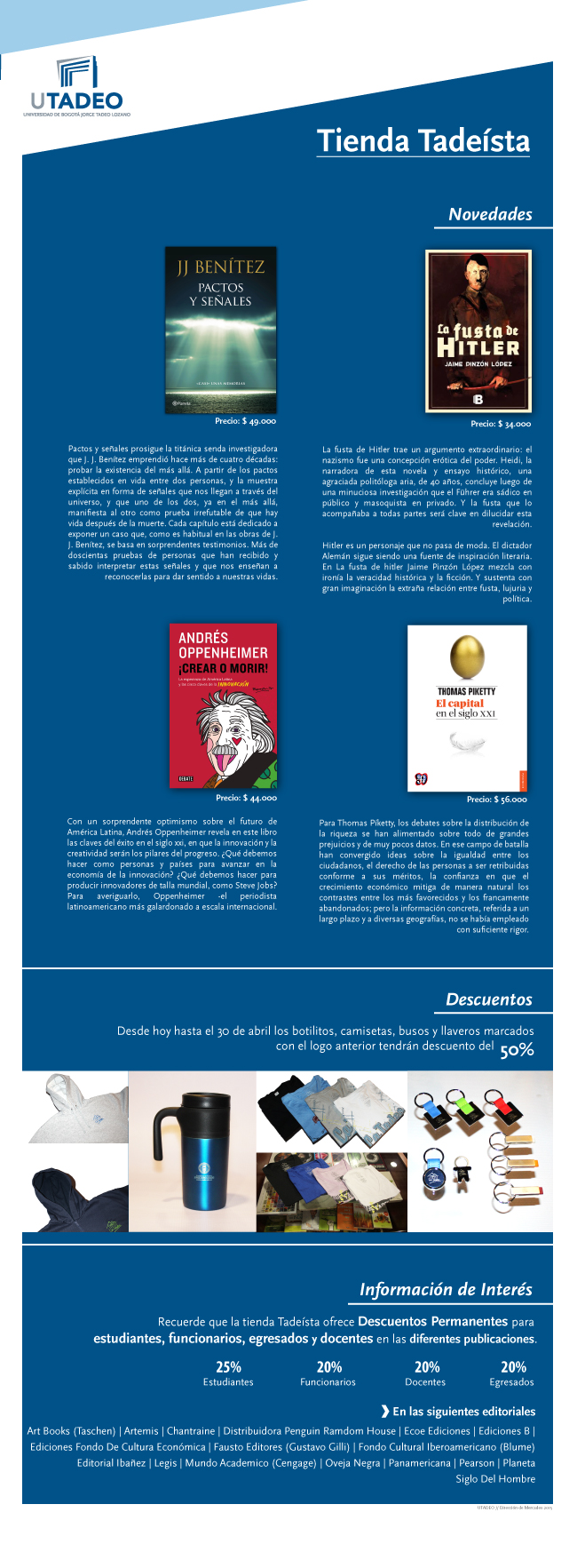 Conozca las novedades y descuentos que la Tienda Tadeista tiene para usted