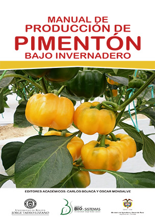 El presente manual de producción de pimentón bajo invernadero recoge las experiencias y resultados del proyecto de investigación "Desarrollo e implementación de un modelo de producción para los cultivos de pepino y pimentón bajo invernadero". El objetivo general de este proyecto fue el de establecer un modelo de producción de pepino y pimentón bajo condiciones de invernadero, a partir de la optimización de las condiciones climáticas y el manejo agronómico de los cultivos. El propósito último del proyecto, y presentado a lo largo de este manual, es el de demostrarle a productores, asistentes técnicos y demás personas interesadas, la viabilidad en el establecimiento de sistemas alternativos de producción bajo invernadero con especies como el pepino y el pimentón. A partir de las ventajas ofrecidas por los ambientes protegidos al limitar el efecto adverso que sobre la producción tienen diferentes factores biofísicos, es posible cultivar productos diferentes al tomate que generen al menos la misma rentabilidad ofrecida por este producto. Hortalizas como el pimentón de diversos colores, pueden convertirse en alternativas interesantes de rotación desde el punto de vista económico y de esta forma, disminuir el riesgo asociado a la variación de precios que tradicionalmente ha tenido no solamente el tomate sino también muchos de los productos hortícolas producidos y comercializados en el país.