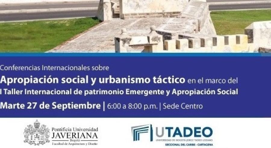 El Programa de Arquitectura de la Universidad Jorge Tadeo Lozano, Seccional del Caribe y la Facultad de Arquitectura y Diseño de la Pontificia Unviersidad Javeriana Bogotá, lo invitan a las Conferencias Internacionales sobre apropiación social y urbanismo táctico, que se desarolla en el marco del I Taller Internacional de patrimonio Emergente y Apropiación Social.