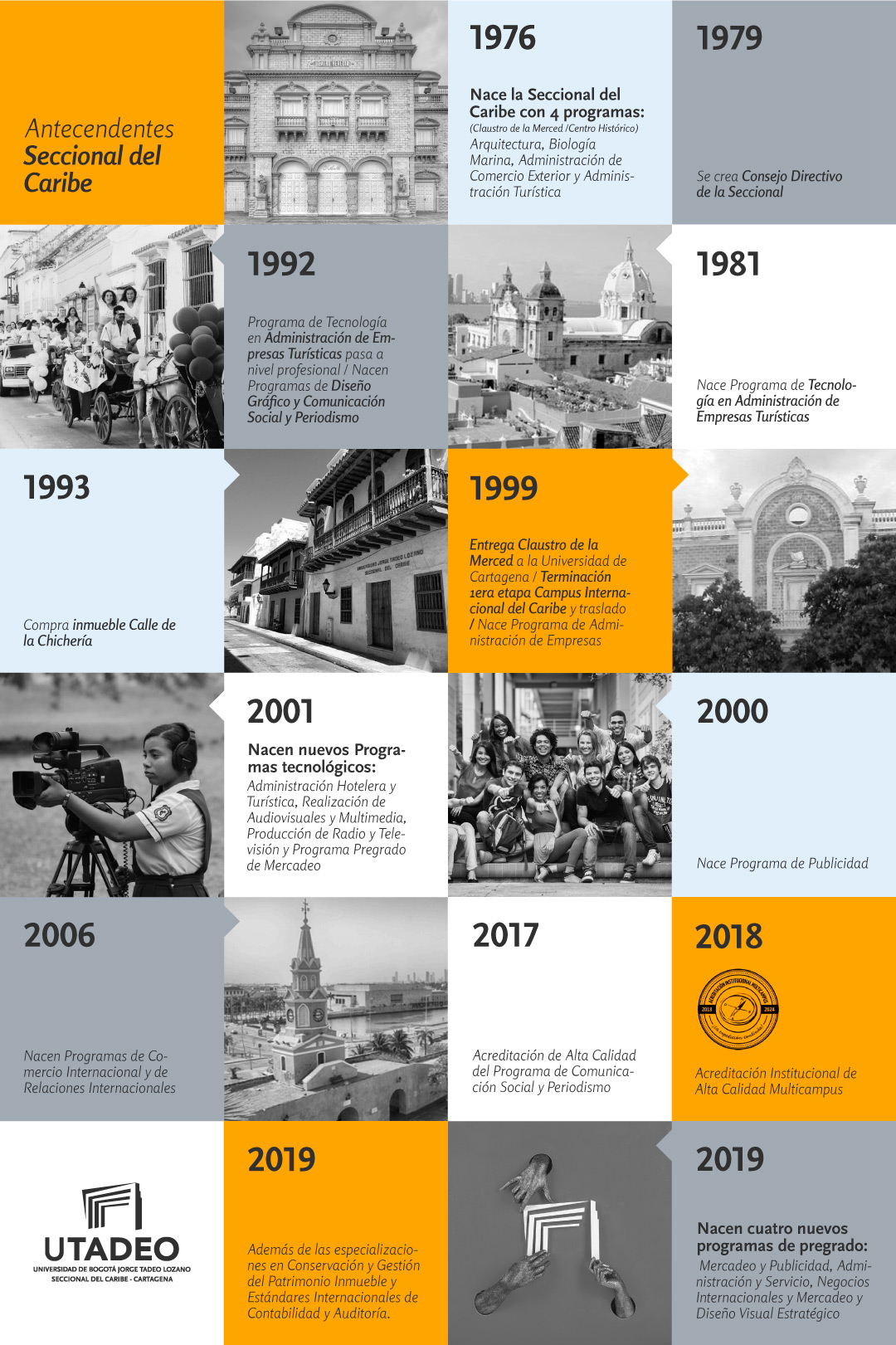 En el primer semestre de 1976 se inician los cursos en las facultades de Arquitectura, Comercio Exterior y Administración Turística por disposición del Consejo Directivo de la Universidad de Bogotá Jorge Tadeo Lozano, el cual desde el año inmediatamente anterior autorizó la creación de la Seccional del Caribe con sede en la ciudad de Cartagena.