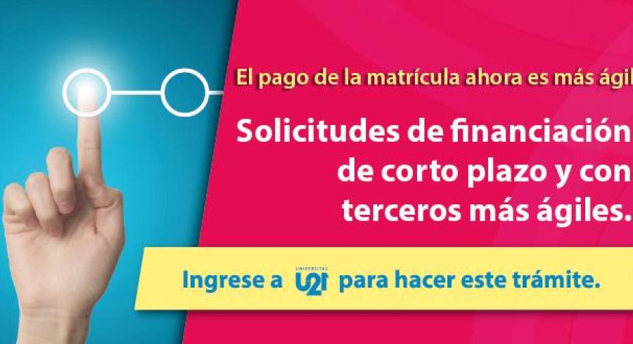 - La Universidad te ofrece crédito corto plazo para ser cancelado en cuatro (4) o cinco (5) cuotas para pregrado y posgrado.