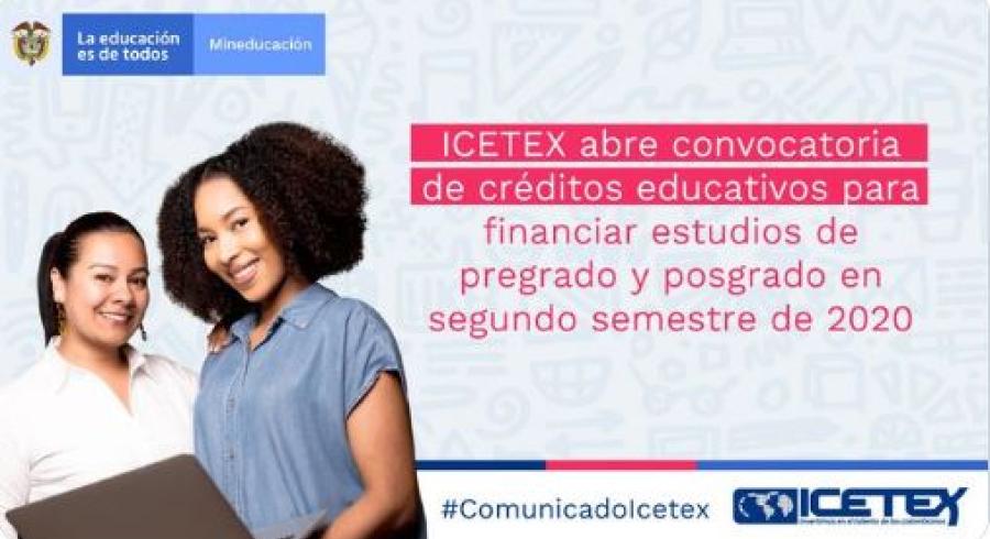 Con el propósito de brindar financiación y mayores oportunidades a jóvenes que buscan ingresar o continuar sus estudios de educación superior en el segundo semestre de 2020, el Icetex abrió la convocatoria de crédito educativo para estudios de pregrado en los niveles técnico, tecnológico y profesional, así como para estudios de posgrado a nivel de especialización, maestría o doctorado en el país o en el exterior.